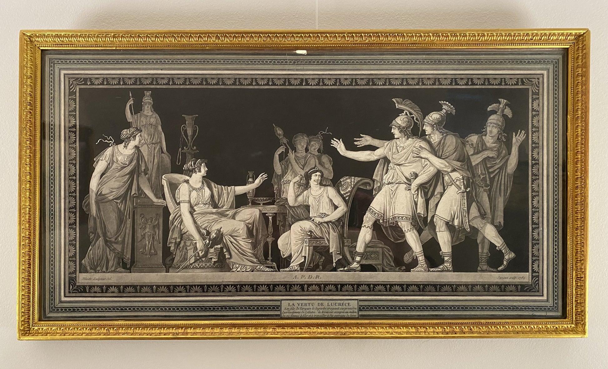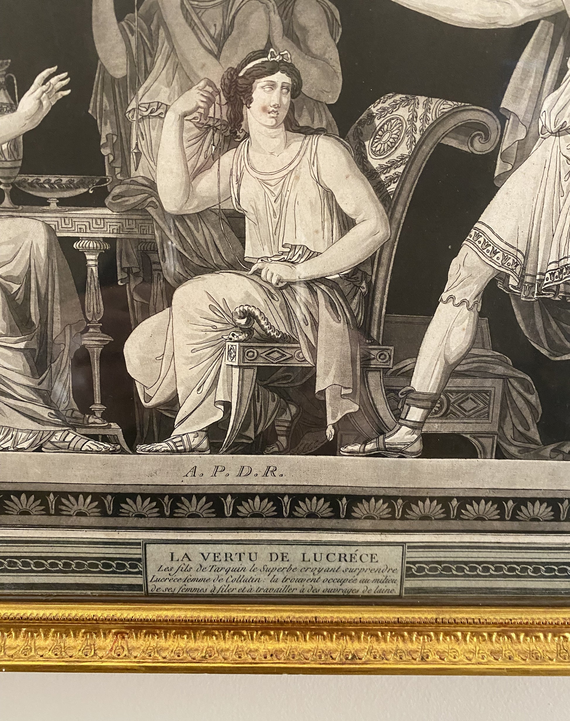 La vertu de Lucréce: les fils de Tarquin le Superbe croyant surprendre Luxréce, femme de Collatin. La trouvent occupée au milieu de ses femmes à filer et à travaillerà des ouvrages de laine".