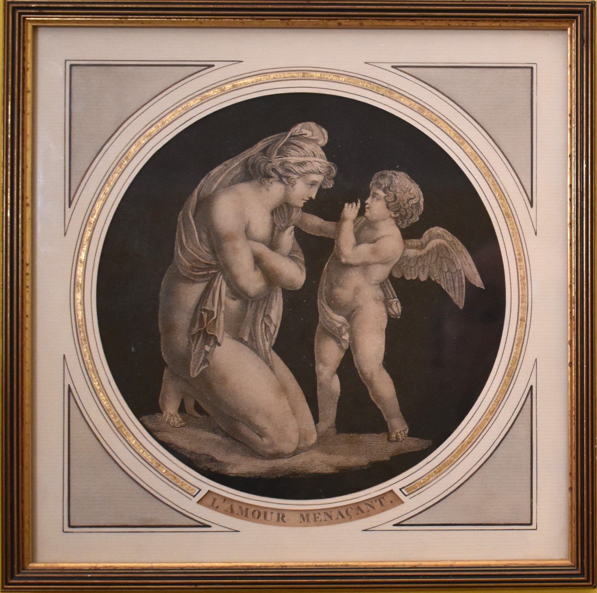 2 gravures met voorstelling van Venus en Amor, getiteld "L'Amour supliant" en "L'Amour menacant". In goede staat.
