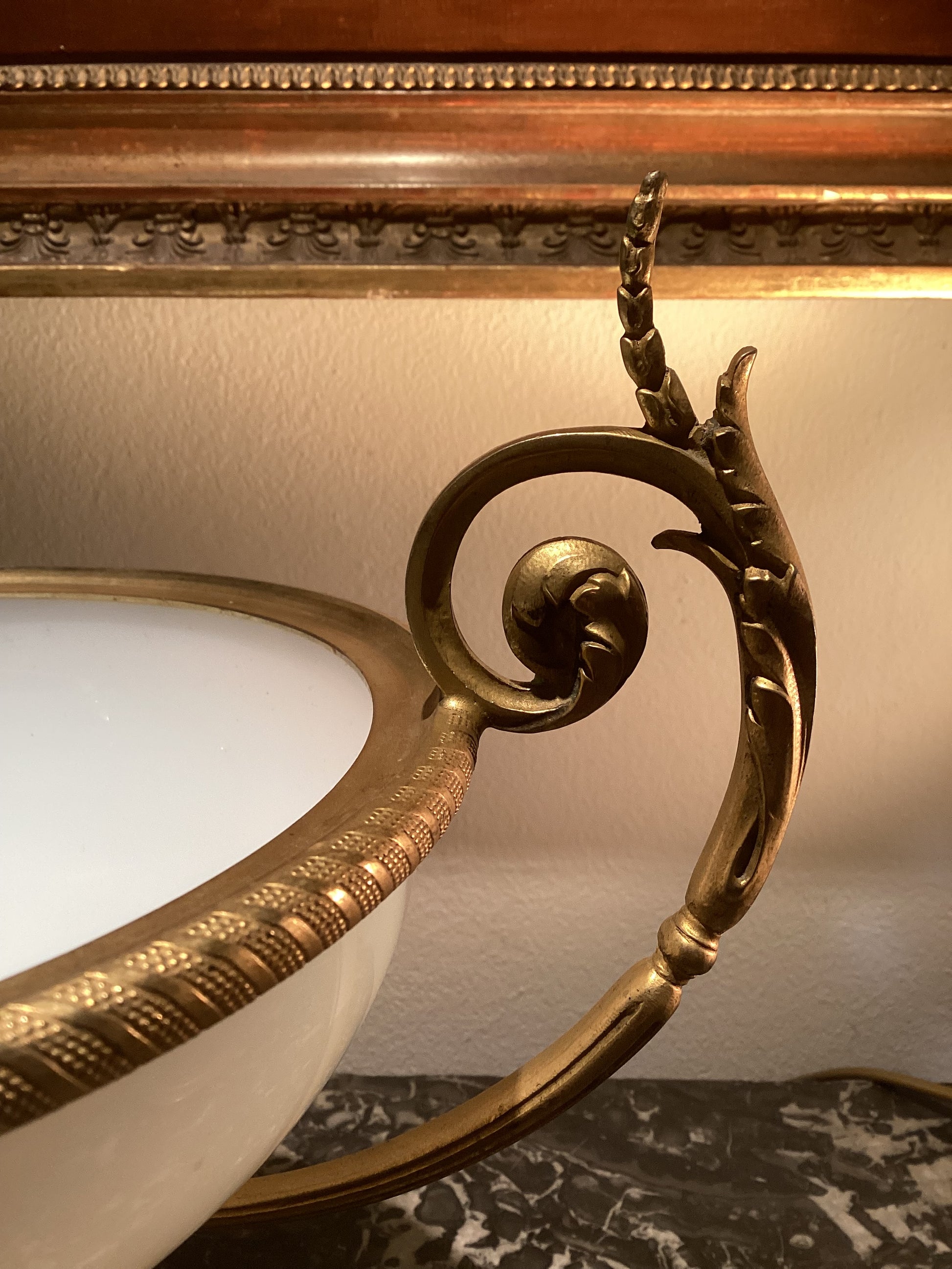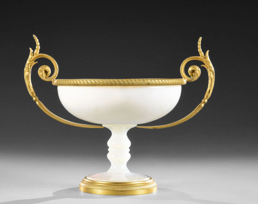 Opaline coupe op voet met vuurvergulde monturen en handvaten, 19de eeuw, periode restauration, Frankrijk.